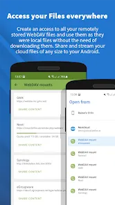 WebDAV: - Access files stored on a WebDAV server - Upload and download files from your device to the server - Create new folders and move files around - Rename files and folders - Delete files