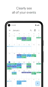 - Color-coding for different calendars and event categories.