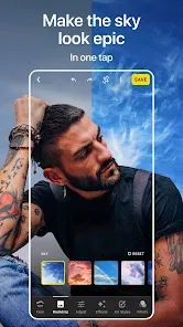 - AI-Powered Sky Replacement: Dramatically transform the mood of any landscape photo by realistically replacing a dull sky with a spectacular sunset, starry night, or dramatic storm.