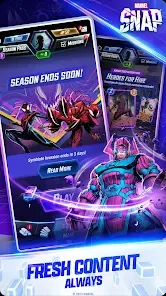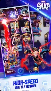 - Vast Marvel Universe Roster: Collect and upgrade hundreds of cards featuring iconic heroes and villains, each with abilities that reflect their comic book personalities and powers.