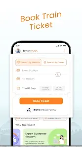 Trainman - Train booking app App is an online ticket booking platform that allows users to book train tickets from anywhere in India. The app provides a convenient and secure way to book tickets for any train journey. It offers a range of features such as live train status, PNR status, seat availability, fare enquiry, and more. The app also provides users with the option to book tickets for multiple journeys at once. It also allows users to save their payment details for future bookings. The app also provides users with the option to cancel their tickets and get refunds.
